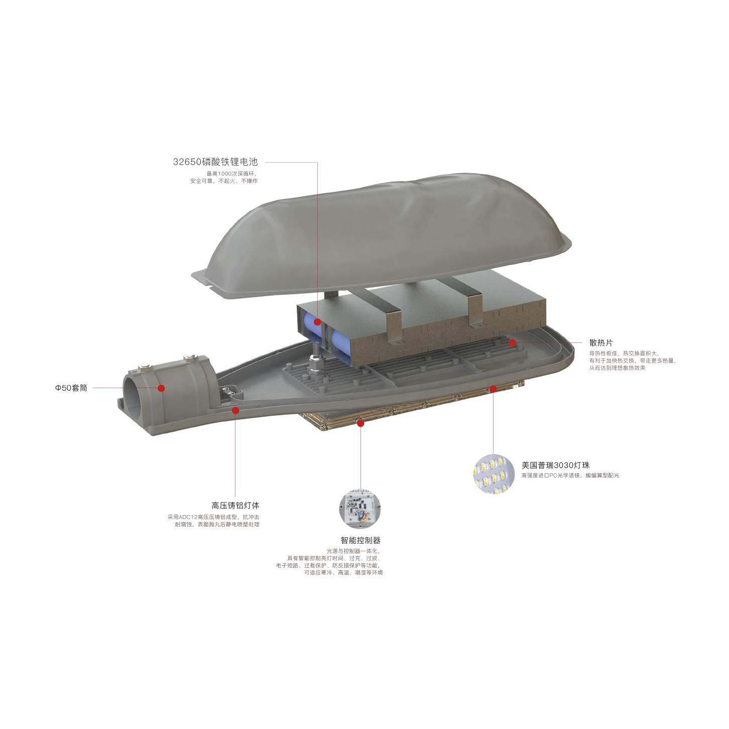 太阳能路灯灯杆材质选用优质低碳钢制作,整体热镀锌,外表喷塑。LED灯具采用铝压铸,自...